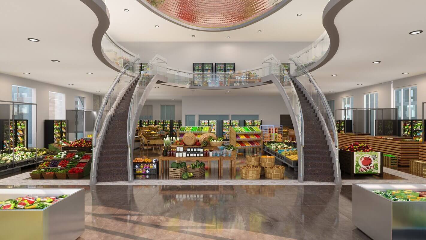 The redesigned market complex introduces a modern, multi-level structure that significantly enhances both functionality and user experience. The new layout replaces the shortcomings of the old structure by introducing a central atrium topped with a skylight, allowing ample natural light and ventilation throughout the interior, creating a pleasant environment for vendors and visitors alike.